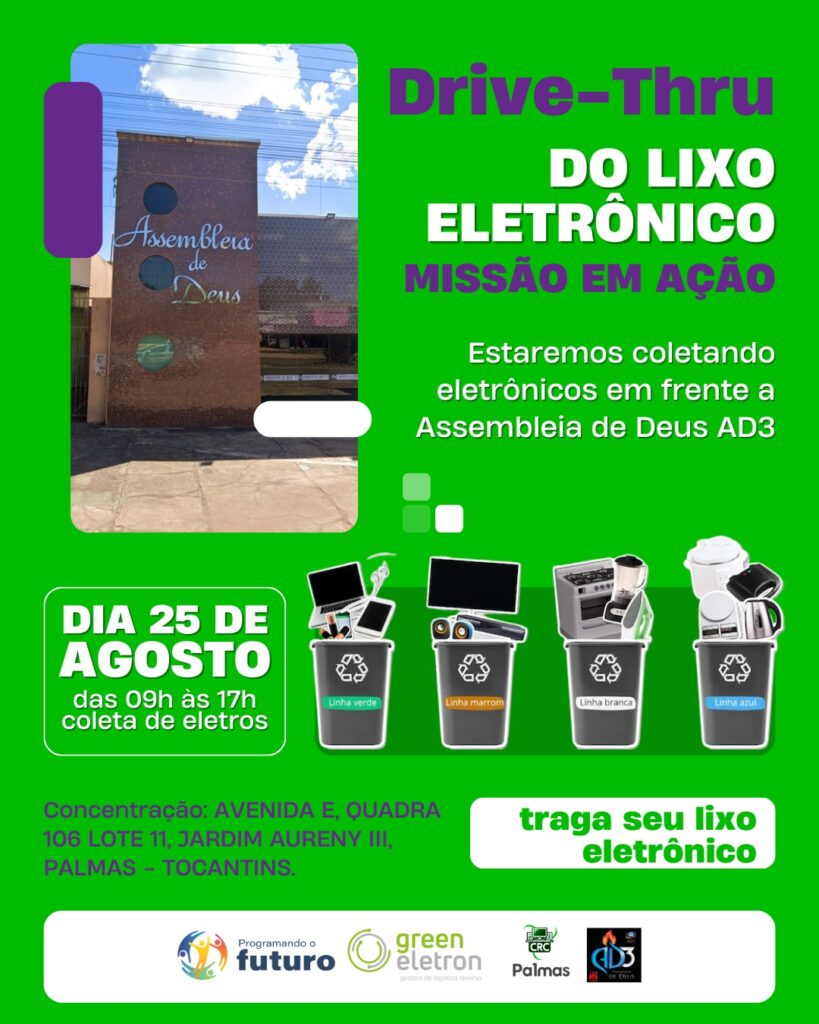 No próximo dia 25 de agosto, das 9h às 17h, a Assembleia de Deus Ciadseta, em parceria com o CRC Lab Palmas/Programando o Futuro, estará à frente de uma importante ação ambiental em Palmas. Como parte do projeto “Missão em Ação”, será realizado um drive-thru de coleta de lixo eletrônico em frente à sede da […]