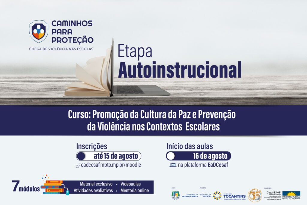 O Ministério Público do Tocantins (MPTO), por meio do Centro de Estudos e Aperfeiçoamento Funcional – Escola Superior do Ministério Público (Cesaf-ESMP) e em parceria com a Secretaria de Estado da Educação (Seduc), oferece o curso online e gratuito “Promoção da Cultura da Paz e Prevenção da Violência nos Contextos Escolares”, uma iniciativa voltada à construção de […]